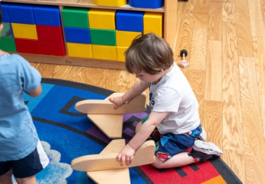 The preschool program prepares children for kindergarten through play-based learning and social-emotional development.